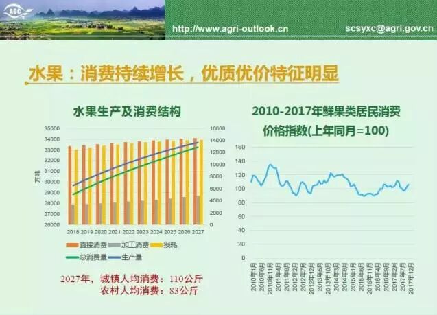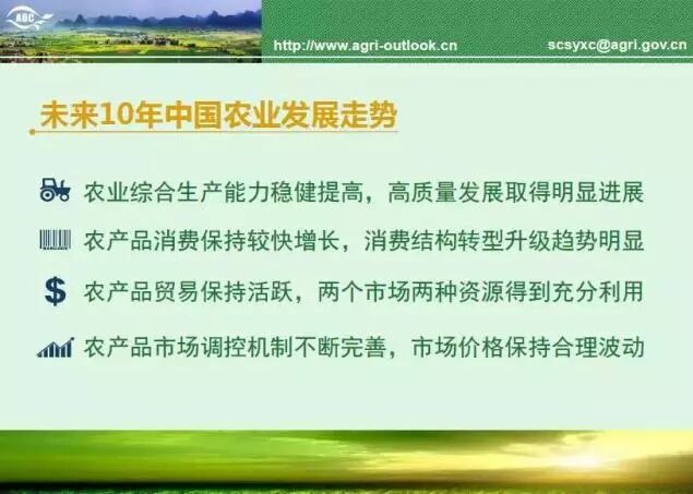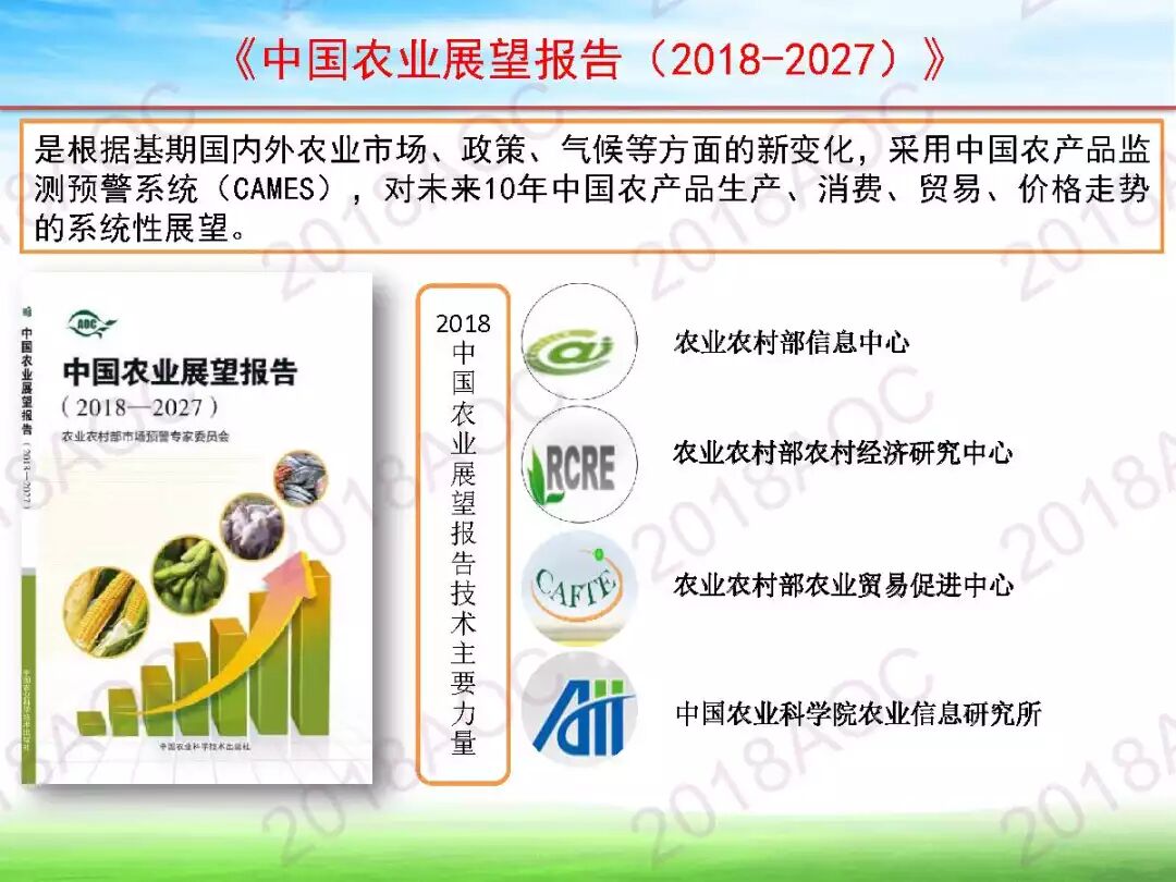 日前,“2018中國農業展望大會”發布了《中國農業展望報告(2018-2027)》(簡稱《報告》),對未來10年中國主要農產品市場供需進行了預測。《報告》指出,展望后期,受成本推動和經濟增長等因素影響,農產品價格穩中趨漲。以下是《報告》原文: