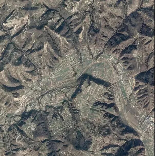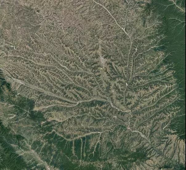 64萬平方公里的黃土高原其實不適合種植農(nóng)作物。但如果你放大看看,就會發(fā)現(xiàn)所有山谷、山坡都被開辟成了可耕地。從天上往下看,類似植物根須的地方便是農(nóng)田。