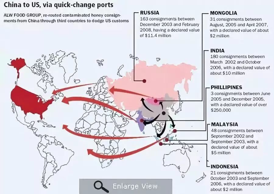 實際上,美國消費的蜂蜜有1/3直接或間接來自中國。